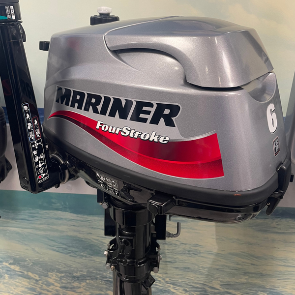 Pre Owned, Never Used: Mariner F6HP Outboard Motor, 4-Stroke, Long Shaft, Pull Start, Tiller